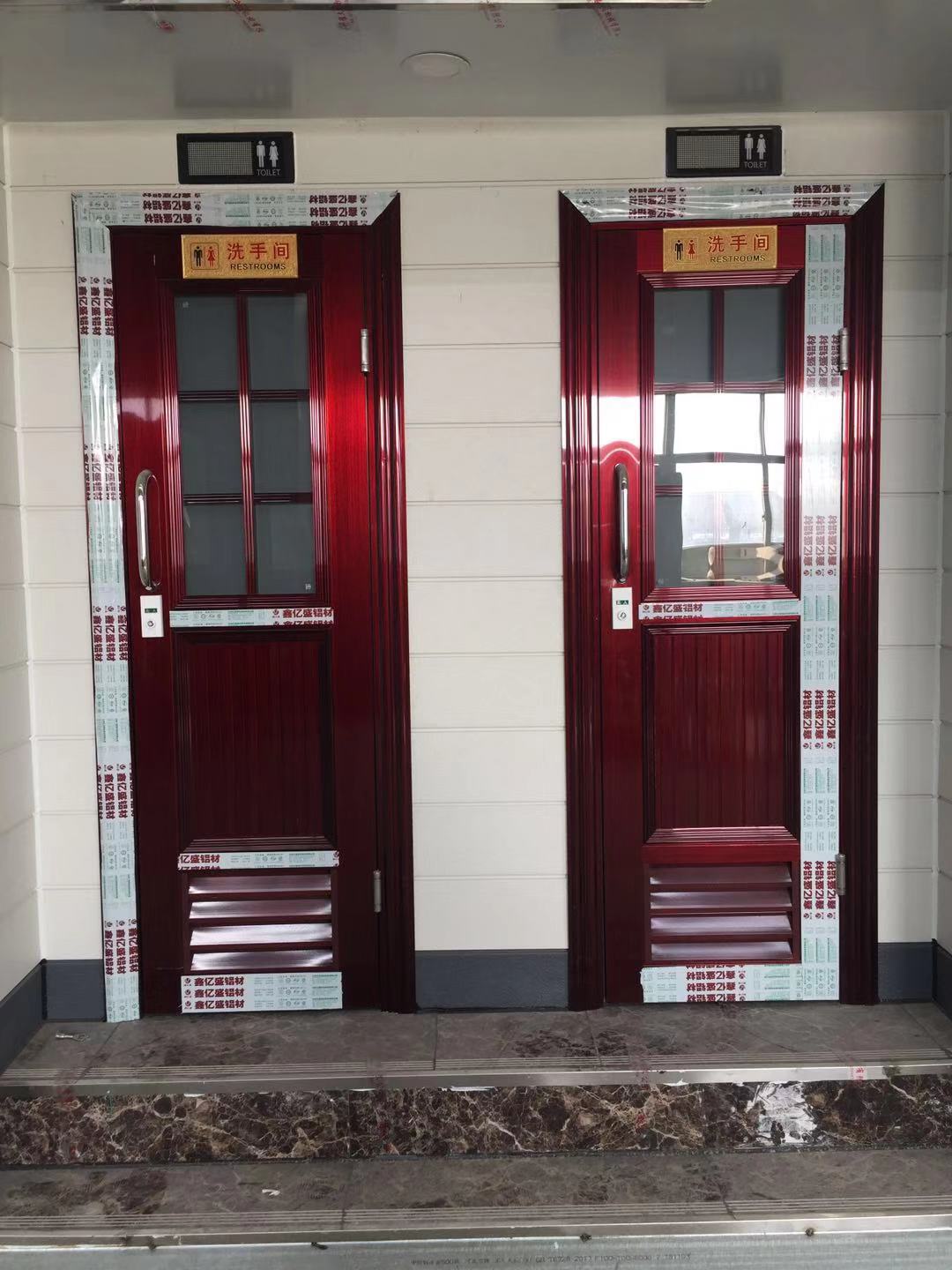 2、墻體: 墻板采用金屬雕花板,金屬雕花板是保溫、隔熱、阻燃、防雨、防凍、隔音、抗震等功能,金屬雕花板表面采用耐候聚酯漆層、氟碳層,具有耐候性、耐腐蝕性、耐酸堿性及自潔行。內(nèi)室墻面為3mm厚熟料的鋁塑板,有防火、防腐、防劃、防撞擊等。